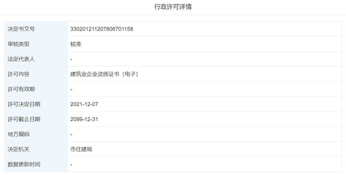 宁波均合建设工程有限公司于2021年12月07日,经由市住建局许可下发建筑业企业资质证书(电子)